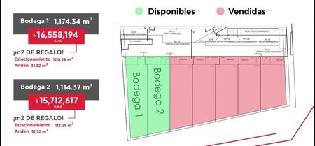 BODEGA 2 DE 1114.37 M2 A UN PRECIO DE $15,712,617 PESOS + IVA