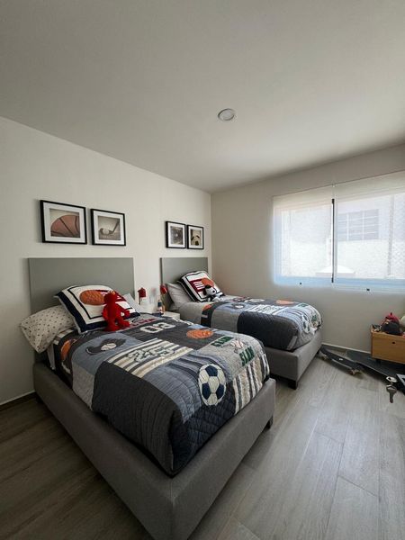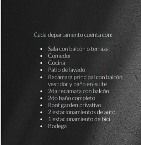 la segunda recámara con balcón, roof garden privativo, estacionamiento para 2 autos 1 estacionamiento de bici y su bodega.