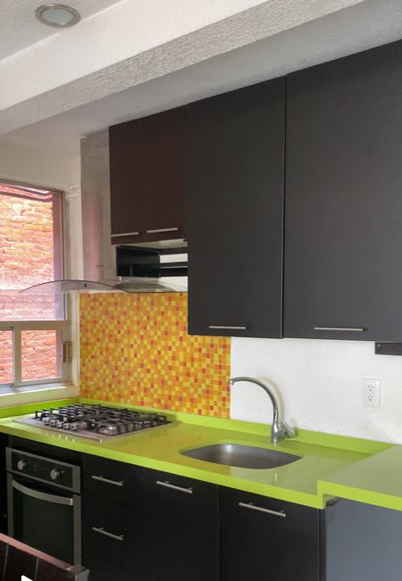 Departamento de 2 recámaras ambas con closet. 1 baño completo, sala , comedor, cocina abierta integral equipada (horno a gas y eléctrico, parilla a gas campana), 1 lugar de estacionamiento, jaula de tendido y lavadero en azotea.