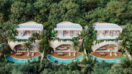 Este nuevo desarrollo ofrece casas de 2 pisos con 3 a 6 habitaciones y estacionamiento. Podrá elegir entre cuatro tipos de casas con diferentes estilos y distribuciones, incluyendo opciones de lock off. Todas las casas están cuidadosamente planificadas y tienen una arquitectura única. Su diseño innovador permite la entrada de mucha luz natural y la circulación constante de aire fresco. Ofecen materiales y acabados naturales que se mezclan con el entorno selvático y ayudan a integrar los espacios interiores y exteriores. Las casas cuentan con jardin o patio, alberca y comedores al aire libre, islas de cocina, electrodomésticos de primera calidad, vestidores, áreas de servicio, balcones y lujosos baños. Algunos también tienen rooftop, gimnasios, oficina y salas de juegos. Se ofrecen a la venta sin muebles pero equipados con aire acondicionado.