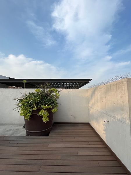 La terraza del Roof Garden mide 55m2 tiene un medio baño, se ingresa por dentro del Apartamento, está techada, dando un toque de privacidad y tranquilidad.