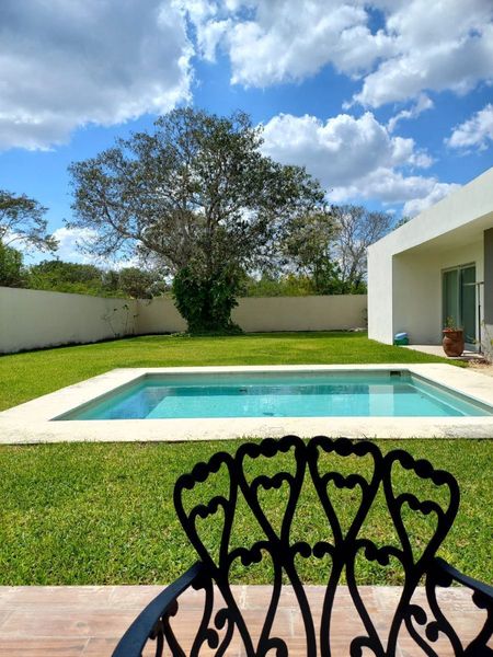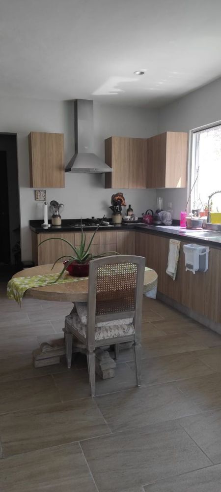 consta de 3 recamaras, 3 baños completos, 3 closets vestidores, medio baño de visitas, amplia y hermosa cocina integral equipada con desayunador y alacena, en su amplio jardín se aprecian árboles frutales y de la región que mantienen un ambiente fresco.