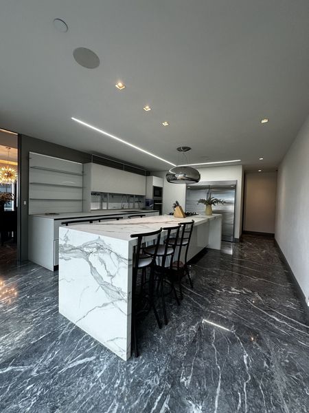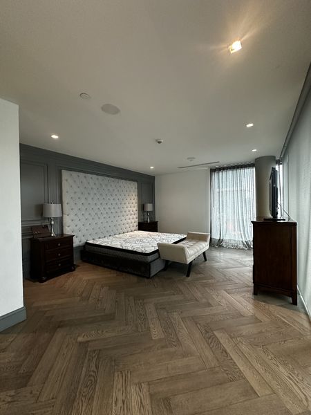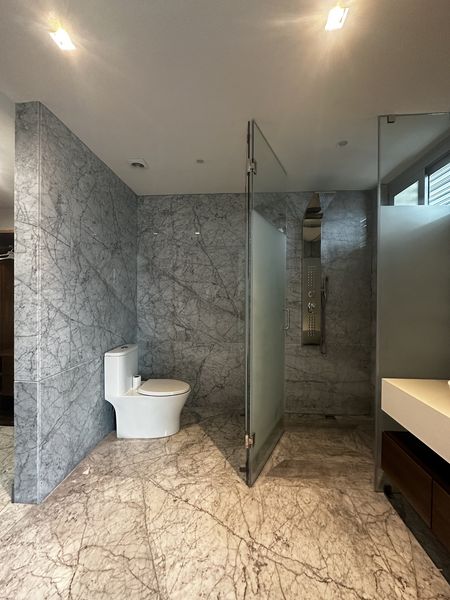 - Tres recamaras con baños completos y walk-in closets de mármol y duela de fresno.