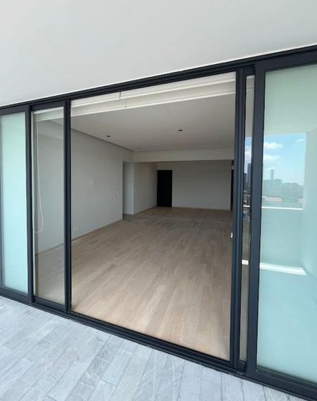 Departamento en renta en Interlomas con 185m2 de superficie de departamento habitable. La propiedad cuenta con 3 recamaras amplias, cada una con su propio baño completo. Cuenta con estancia de sala y comedor la cual tiene un balcón/terraza muy amplio. Cuenta con medio baño para visitas, cuarto de servicio con baño completo y 2 lugares de estacionamiento. El complejo residencial cuenta con vigilancia las 24 horas y amenidades: áreas verdes para relajarse alberca techada, alberca al aire libre, gimnasio totalmente equipado, asadores para reuniones, salón de eventos y un salón de adultos.