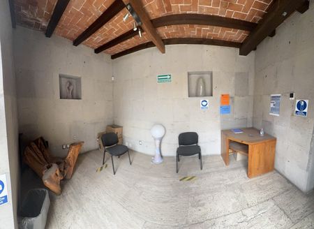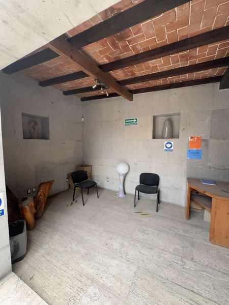 cuenta con un patio central contra tragaluz tipo pérgola de 65 m² con un acceso directo a la calle con estacionamiento privado de la propiedad en la calle para sus posibles clientes, compuerta electromagnética de seguridad, vestíbulo con nichos decorativos con efectos de iluminación, sala de espera gran Hall Central cuatro privados de Dirección, 1 a de ventas con cuatro estaciones de trabajo, sala de juntas, mesas de guardia, baños, ejecutivos, todo diseñado por interioristas italianos, con un exquisito gusto