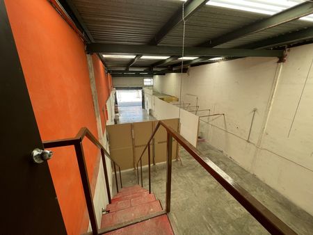 Cuenta con área de bodega, cocineta, 2 baños, área para oficinas en 2 niveles.