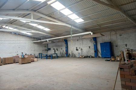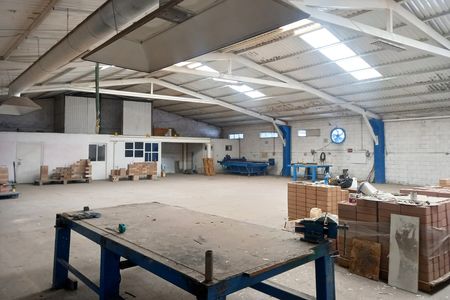 Cuenta con 3 oficinas en la parte interior y 1 baño. En el patio de maniobras cuenta con comedor y otro baño mas, totalmente bardeado y con portón de acceso.