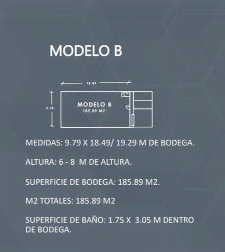 -Medidas: 9.79 x 18.49 / 19.29 de bodega