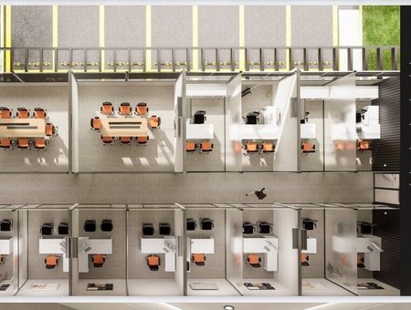 • Cowork en la planta alta del área comercial que incluye: recepción, 3 salas de juntas, 12 oficinas, área de café y baños.