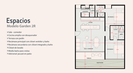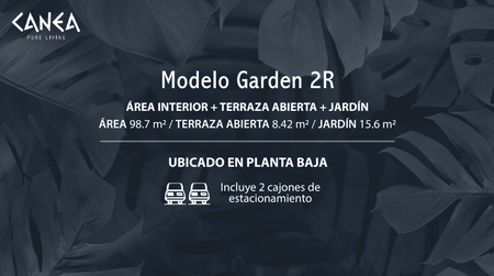 MODELO GARDEN 2R Área interior: 98.7 m² + Terraza abierta: 8.42 m² + Jardín: 15.6 m²