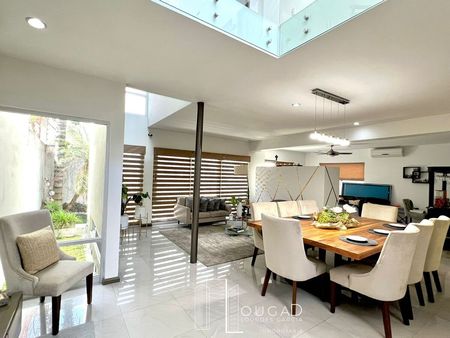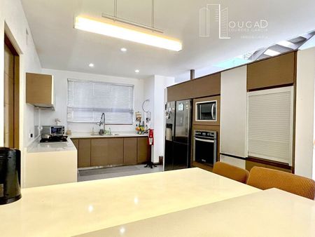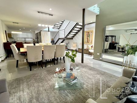 Moderna casa de tres niveles, con vistas desde la terraza, amplios espacios y alturas. Con una cocina equipada
