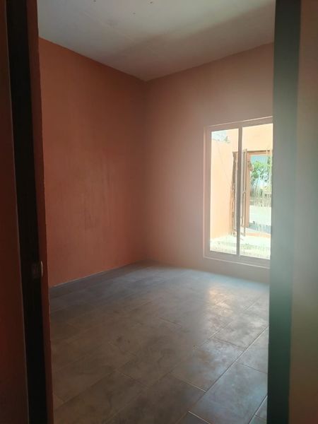 Casa nueva de una sola planta, con buena ubicación sobre calle pavimentada.