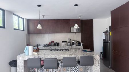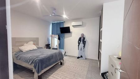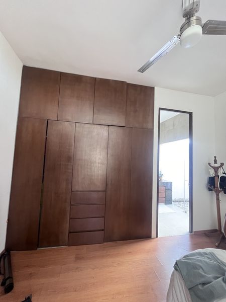 - Recámara principal en planta baja con baño completo, closet de pared y vista al patio.