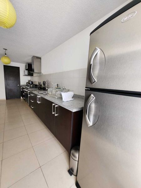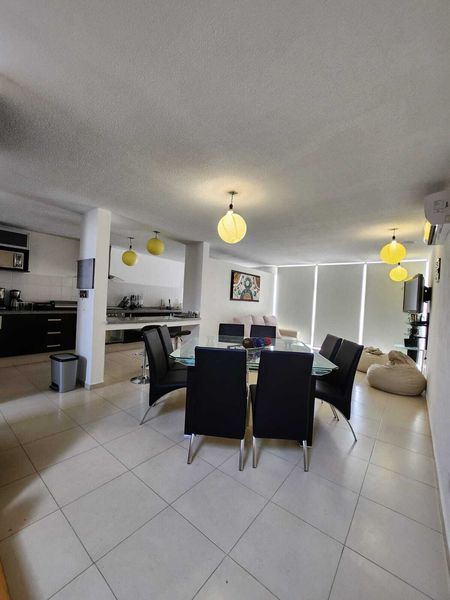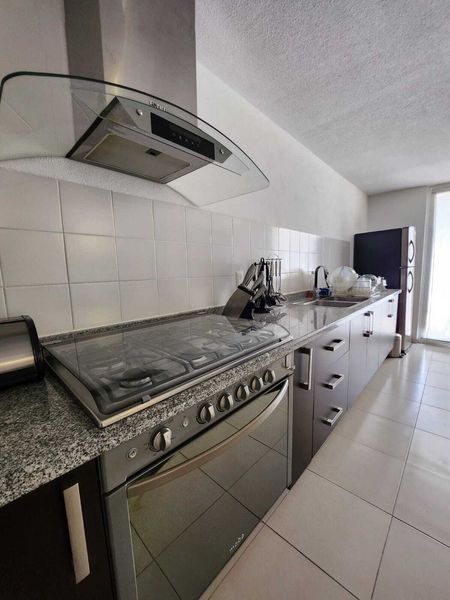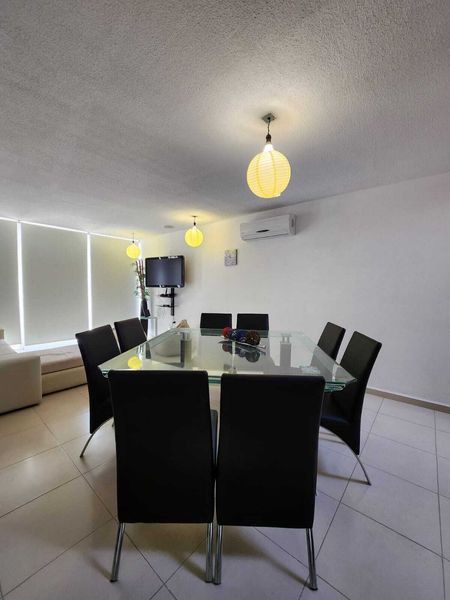 Cuenta con aire acondicionado en sala y comedor al igual que en la recámara principal. Además tiene centro de lavado con lavadora, secadora y lavadero.