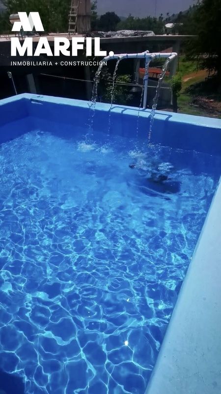 Cuenta con amplios corredores y terrazas, alberca, 2 recámaras con baño, sala, comedor, cocina, y amplias áreas verdes.