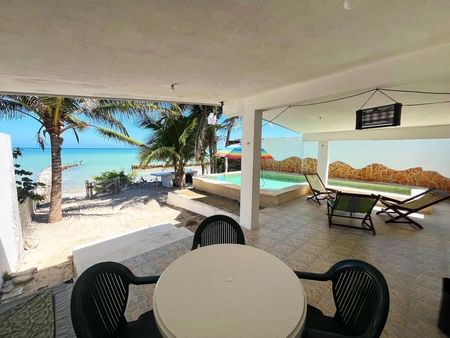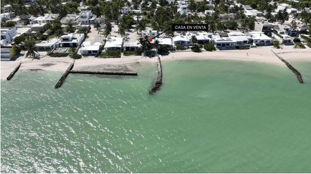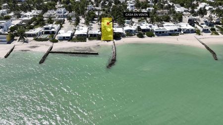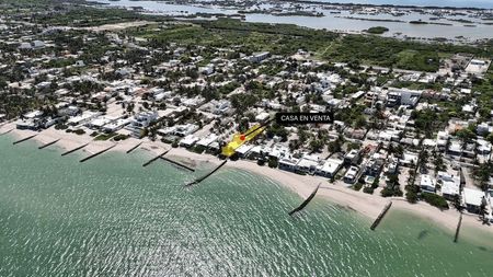 Casa frente al mar con amplio terreno (723 m2) ubicada en la hermosa playa de Chelem, Yucatán, rodeada de palmeras que brindan un ambiente tropical y relajante.