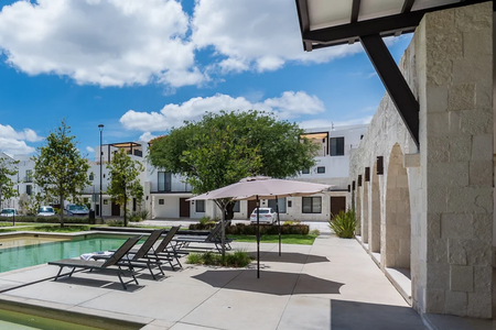 - Alberca con chapoteadero, área de asoladero, áreas verdes e infantiles, terraza, gym, cancha multiusos, ludoteca, sala de jòvenes, pet park