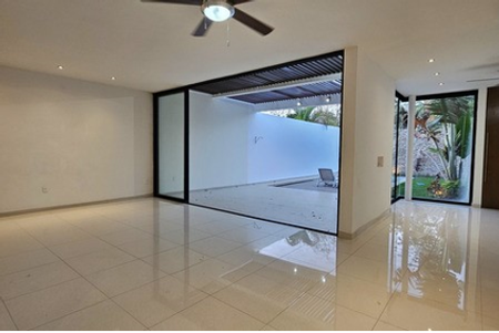 •Sala y Comedor con vista a la terraza techada y a la Alberca.