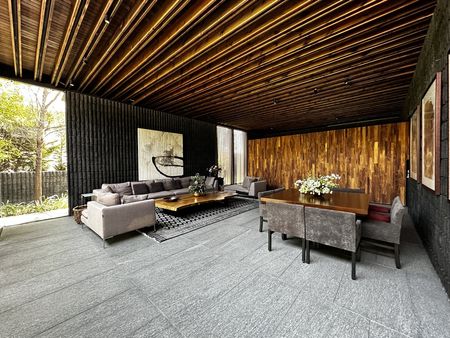Preciosa casa de dos pisos en El Campanario diseñada por el reconocido Arquitecto Juan Carlos Kelly. Cuenta con una habitación principal en planta baja por lo que no es necesario subir escaleras. Tiene una terraza y jardín que son arropados por toda la casa, ideal para ver el área verde en todo momento.