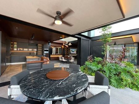-Terraza techada con acceso directo desde la cocina y el área de asador, ideal para disfrutar de veladas al aire libre.