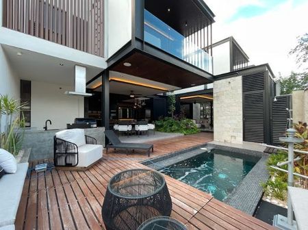 -Piscina con deck de madera dura Tzalam y regadera independiente.