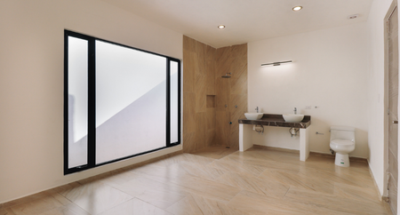 - 1 Habitación principal con baño completo closet vestidor (sin carpintería) , con ventanales para acceso a la piscina.