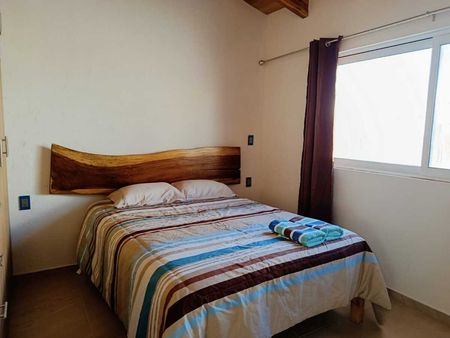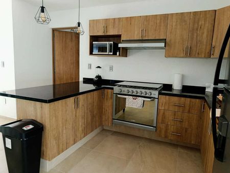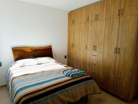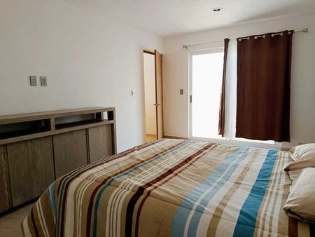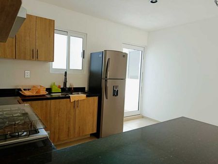 Consta de cocina equipada, sala a doble altura, jardin interior, dos recámaras secundarias con closet y comparten baño, área de lavado y una recámara principal con baño propio y amplios espacios.