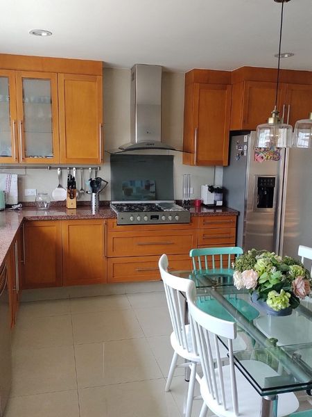 Casa impecable disponible en conjunto residencial cerrado con vigilancia y CCTV, ideal para aquellos que buscan total seguridad y tranquilidad. Disfruta del gran jardín de 150 m2 con terraza techada y área para asador, perfecto para tus reuniones familiares y sociales. Ahorra en gastos de energía con las celdas solares y el calentador eléctrico incluidos en la casa. Además, cuenta con 3 estacionamientos techados y fijos, 2 bodegas y cuarto de servicio con baño y área de lavado. En la planta baja está la sala familiar y un medio baño para visitas, de donde puedes salir al jardín. En la primer planta se encuentra una cocina equipada con antecomedor y despensa, despacho, sala y comedor. En la segunda planta están las 3 habitaciones con baño propio, la principal con vestidor y las otras con closet. La casa cuenta con una cisterna común con hidroneumático.
