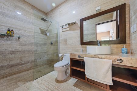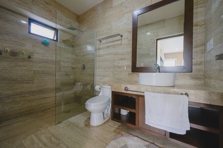 -4 recámaras, cada una con su clóset de gran tamaño y su baño, con paredes y piso de