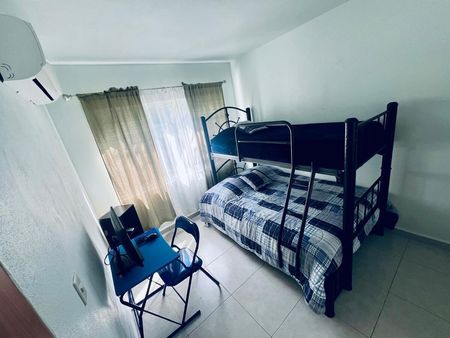 - Dos recámaras de buen tamaño, equipadas con aire acondicionado y clósets de excelente calidad, baño completo compartido