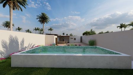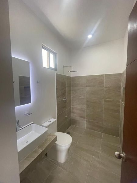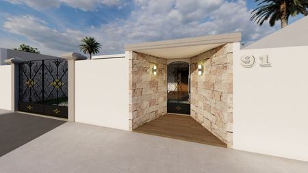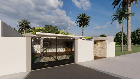 - Fachada distintiva con acabados en piedra tipo crema maya