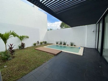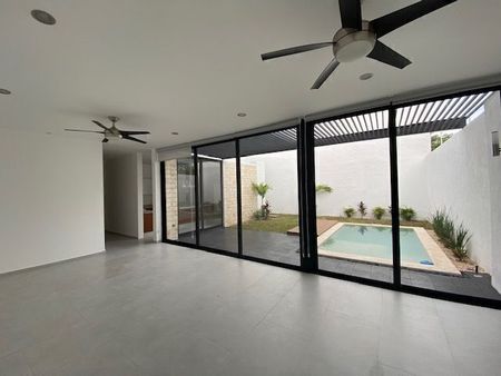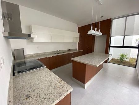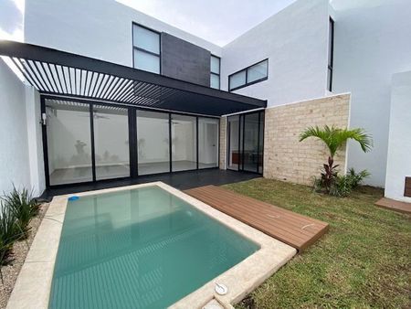 Hermosa casa al norte de Merida ubicada en Temozon norte en privada con 20 casas, cuenta con amplios espacios, casa club y la siguiente distribución: