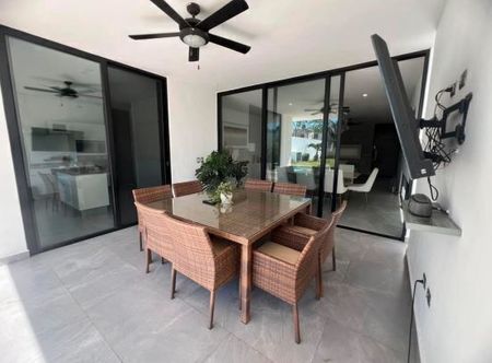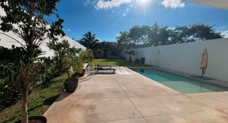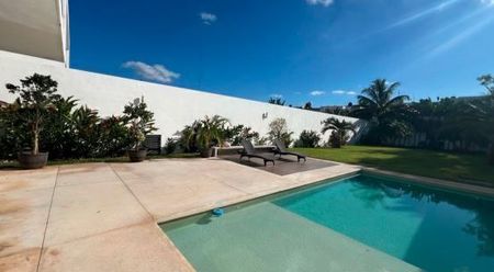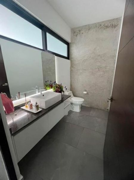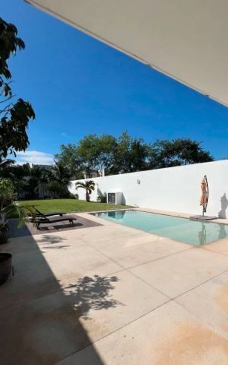 Recámara principal con walk-in closet, baño completo y balcón con vista a la piscina y jardín
