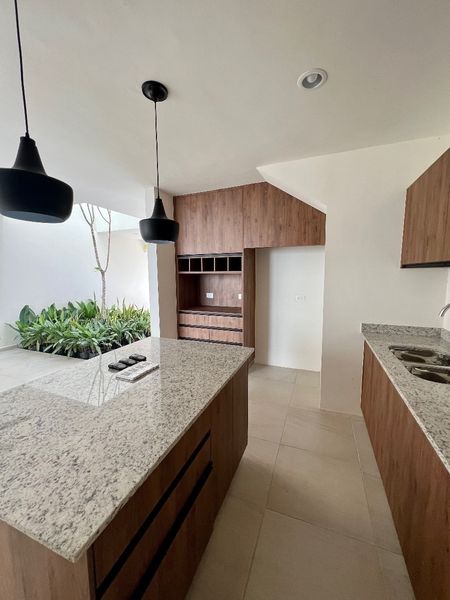 Cocina con gavetas de madera e isla