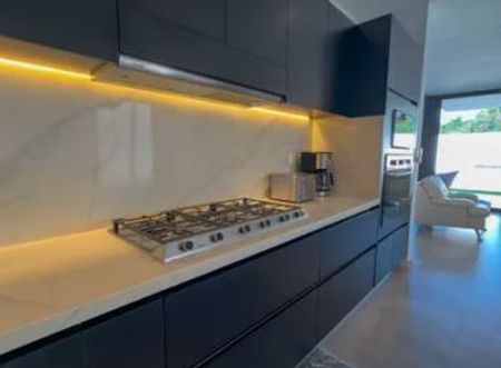 - Cocina: mesetas de cuarzo en toda la cubierta incluyendo back splash y mármol negro estelar en isla.