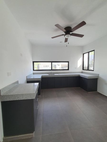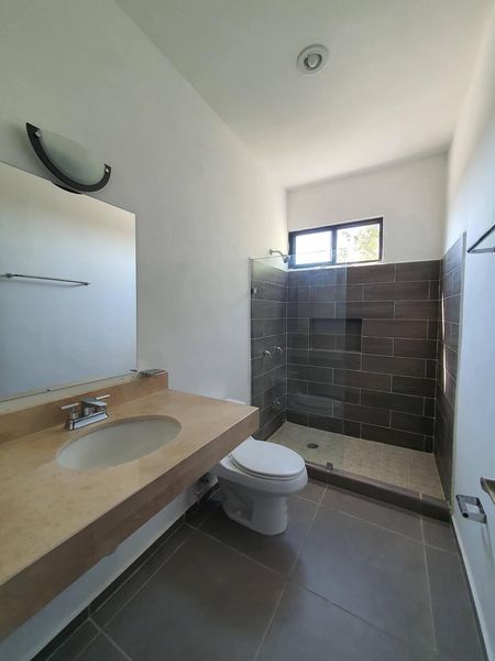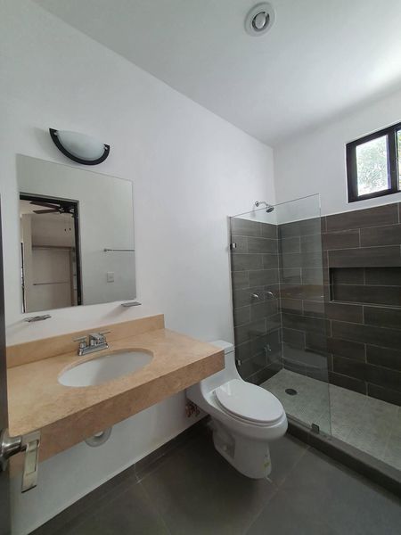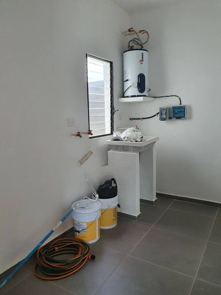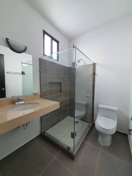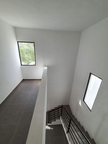 La casa dispone de dos plantas, en la cual, la planta baja corresponden a las áreas sociales y una recámara con baño propio + área de servicios.