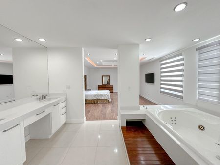 Planta alta:3 Recámaras, principal con Walk-in clóset, baño completo con doble lavabo y jacuzzi, 2 Recámaras con Walk-in clóset y baño completo, estancia, cuarto de visita (opción 5ta recámara o estudio) y terraza.