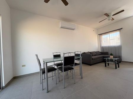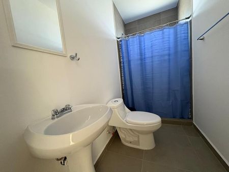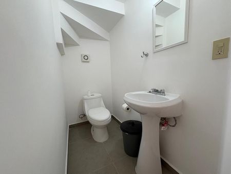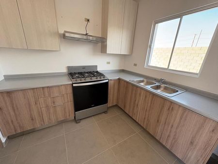 Equipada con cocina integral, estufa, campana y refrigerador en primer planta medio baño