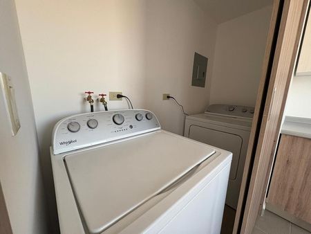 Cuenta con lavadora y secadora.