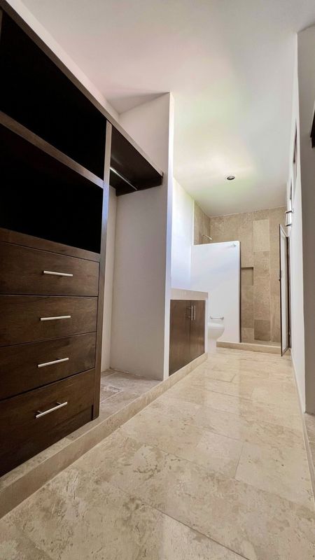 - Recamaras principal con closet vestidor y baño completo con doble lavabo, terraza y balcón con vista frontal de la privada