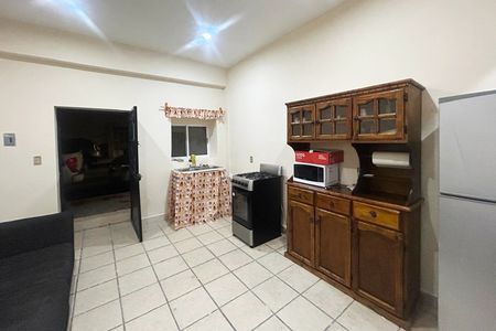 Cuenta con cocina, sala, comedor, todo área abierta, una recámara con baño completo y patio de servicio.