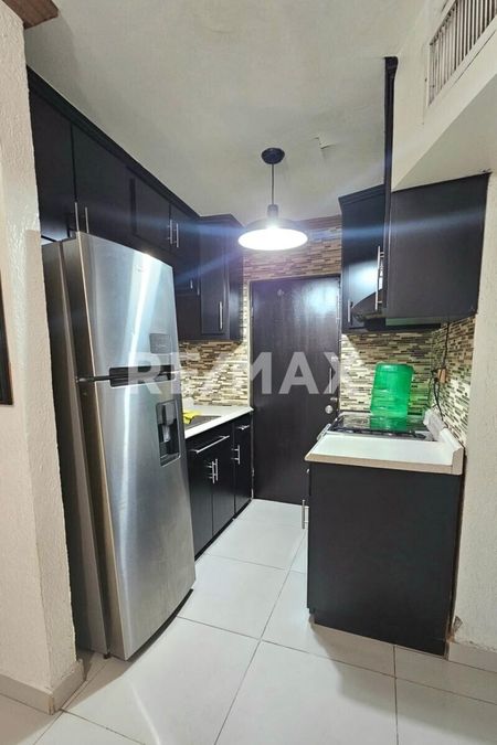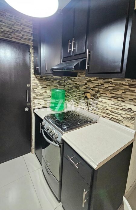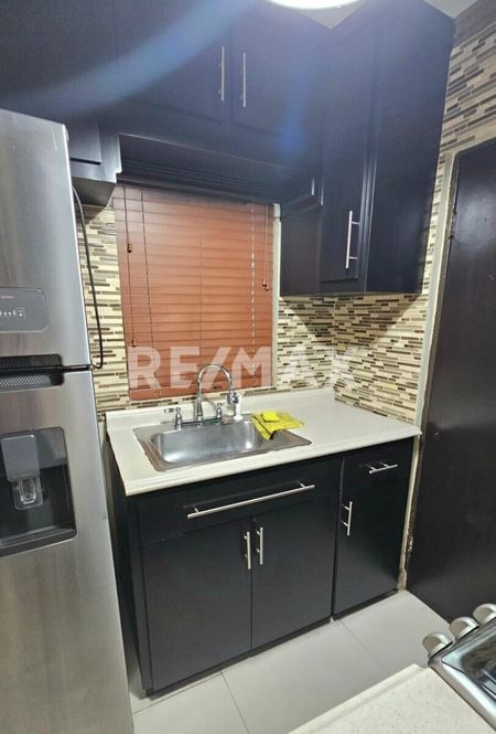 Cocina integral equipada, con estufa y refrigerador incluído.