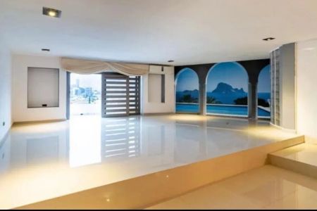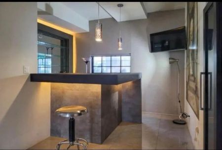Cochera para 3 autos,cocina,sala comedor, estancia, área para bar y segunda estancia.