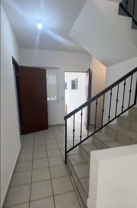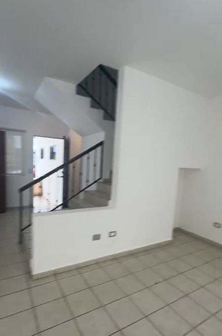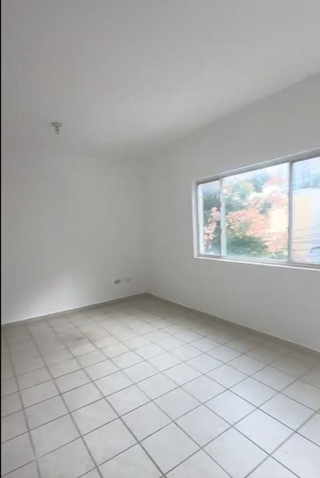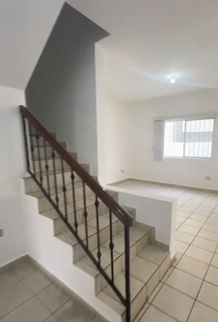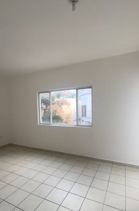 Casa en renta recién pintada por dentro y por fuera, con cochera para dos carros, pasillo de servicio, patio.