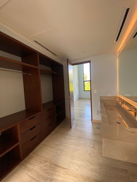 Estrena casa AMUEBLADA en privada residencial Amanha. Ubicada en Yucatan Country Club, cuenta con 270 m2 habitables mas 360 m2 en terrazas privadas, alberca y jardín, techos altos con terminados de lujo. PB; área de sala comedor, medio baño de visitas, habitación secundaria con baño, cocina, cuanto de servicio con baño y área de lavado. Acceso directo a terraza, alberca y jardín. PA; habitación principal con vestidos y baño, recamara secundaria con baño completo y vestidor, acceso a roof garden privado con vista a campo del golf Jaguar. Espacio para 3 autos, cuenta con seguridad privada 24/7. Excelente opción para tu familia, cerca de escuelas, universidades entre otras amenidades. Precio incluye mantenimiento. Property by RealKOR. Citas al 322 289 0552. Metros cuadrados son aproximados.
