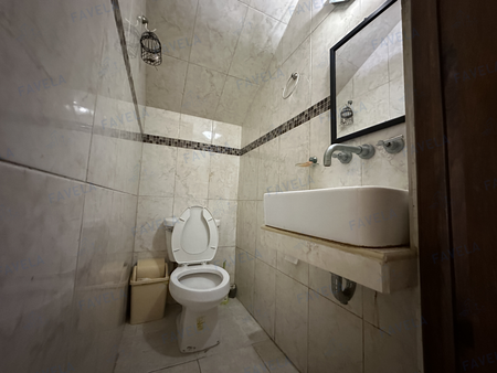 Patio trasero con cuarto de lavado con baño