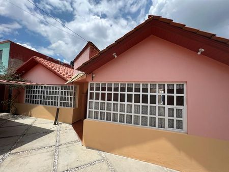 Casa de un nivel (planta baja).Cuenta con sala-comedor, cocina, 2 baños completos, área de lavado, estacionamiento con capacidad para dos carros, recama principal y recamara secundaria, amplios ventanales , con buena iluminación ; ubicada en una zona tranquila, a 10 minutos del Zócalo de Tlaxcala centro, cerca de Universidades y centros comerciales.