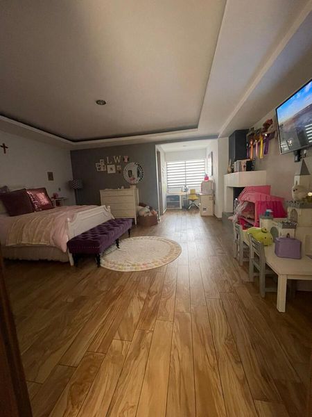 Una recámara con doble altura tipo tapanco ideal para oficina o área de juegos.