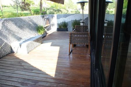 TOLDO ELECTRICO EXTRAIBLE EN PATIO. ACABADOS -PISO INTERIOR DE MADERA