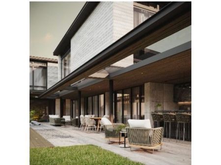 mármol en pisos interiores y baños, cantera y mármol en fachada, duela de ingeniería en recámaras, ventanales Duovent serie 150, espejos vanity en baños, vestidores, puertas de madera de encino, cocina integral, iluminación led, Plafones en el área social y recámara principal, Fan & coil en área social y recámara principal, placa termoaislante Hebel en losas, muros de block hebel en fachada poniente, Alberca con caldera.